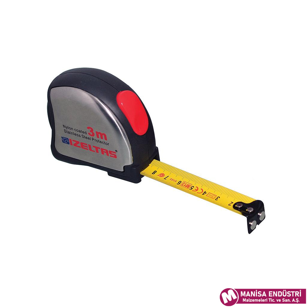 5 metre uzunluk, 19 mm genişlik. Yüksek kaliteli çelik şerit. Darbelere dayanıklı plastik kasa. Otomatik şerit kilitleme mekanizması Net okunabilir rakamlar ve çift yönlü ölçüm imkanı Kemer klipsi ile kolay taşıma.