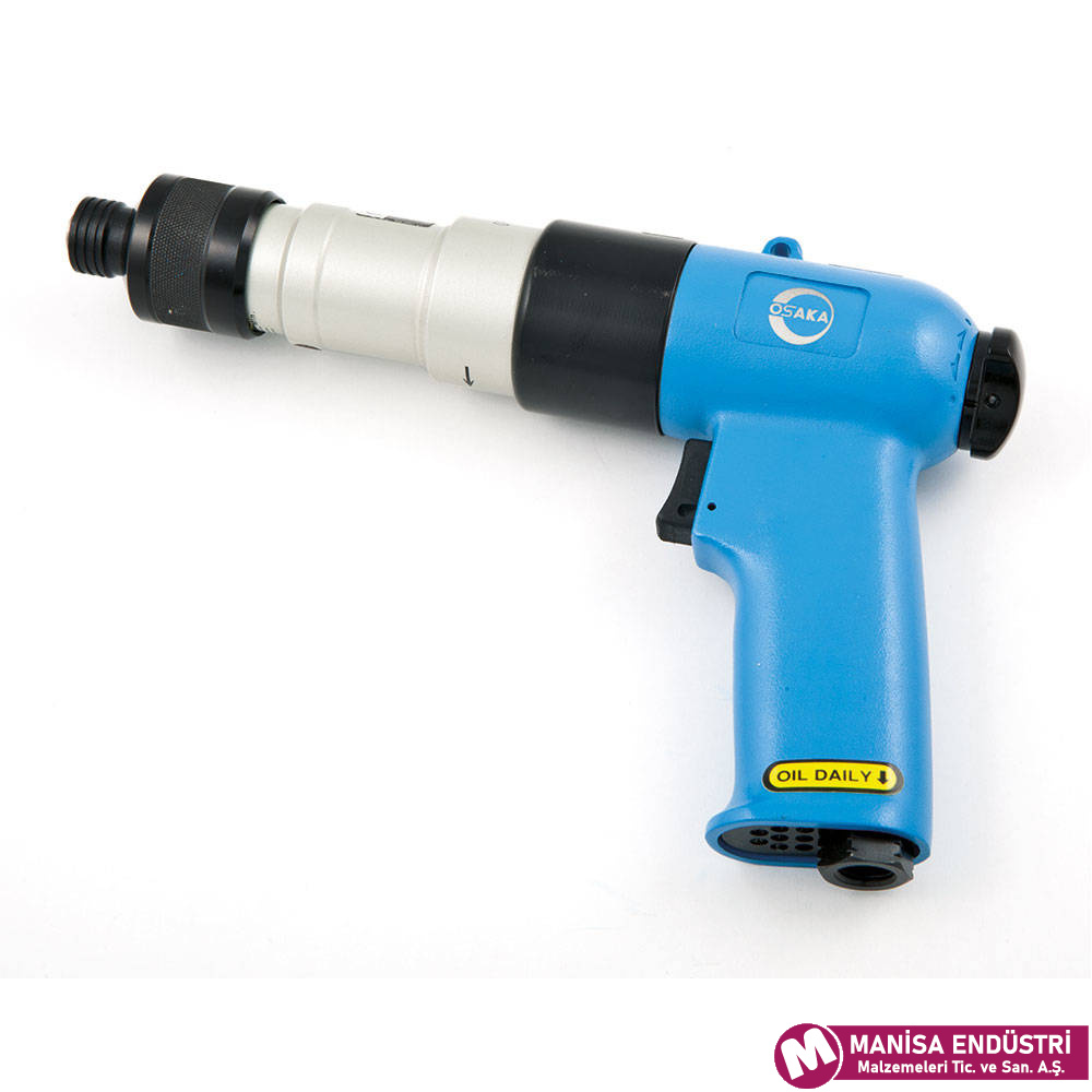 Bu model, Osaka’nın profesyonel havalı tornavida serisinden olup özellikle montaj hatlarında dıştan tork kontrolü isteyen operatörler için geliştirilmiştir. Uzunluğu ~250 mm, ağırlığı ~1.43 kg, 1/4″ kare başlıkla 8 mm vida çapını destekler. Çalışma basıncı 6.3-8 atü aralığında ve hava tüketimi ~170 lt/dk olarak verilmiştir.