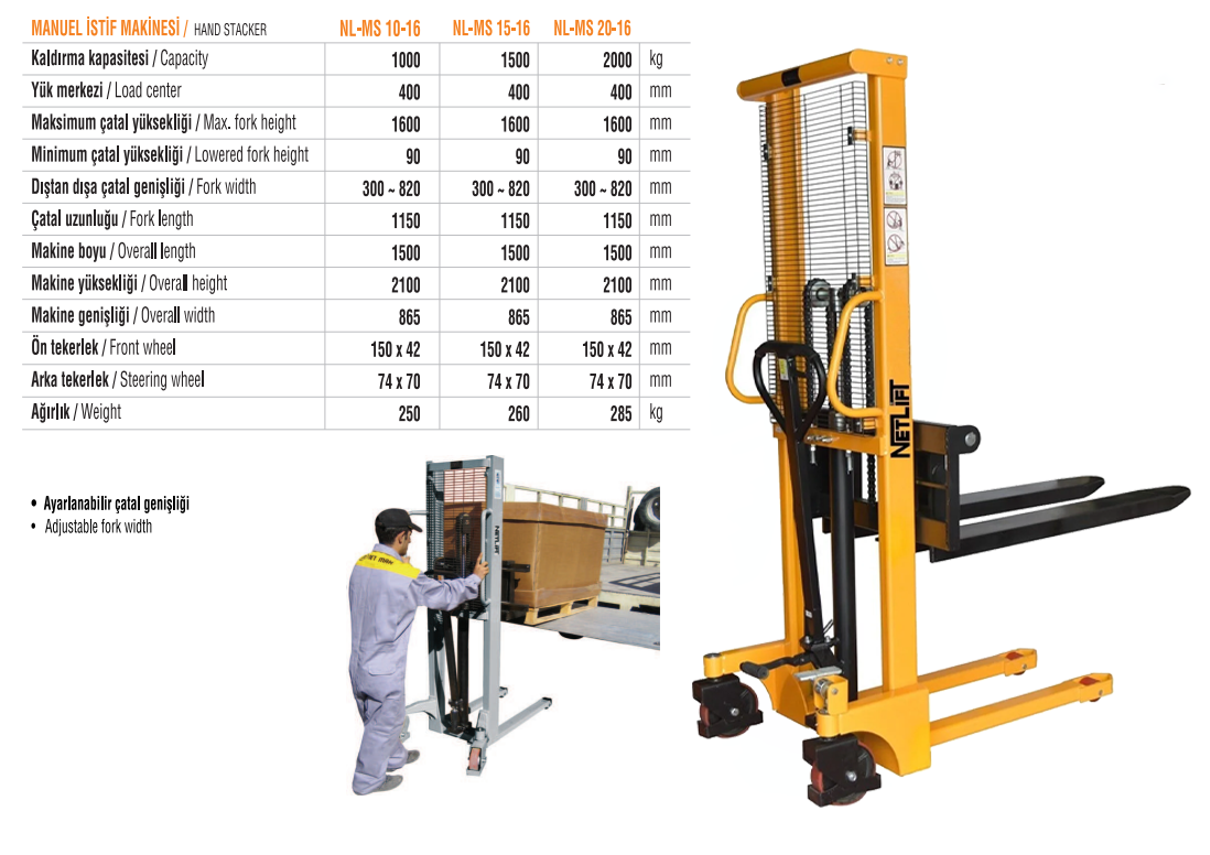 Netlift Manuel İstif Makinası 2 Ton 1.5 Metre