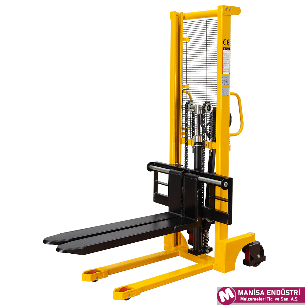 Manuel istif makinası Kaldırma akülü yürüme operatör vasıtası ile manueldir Kaldırma kapastesi 1,5 Ton Kaldırma Yükseklği 200 cm. dir ürün taşıma için transpalet tercih edilmelidir. İstif makinalarında ürün taşıma esnasında çataln yerde olması gerekmektedir, çatal yüksekte iken ürün taşımak iş güvenliğine uygun değildir.
