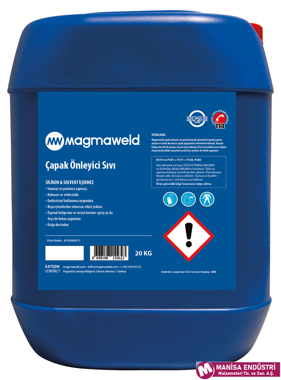 Magmaweld çapak önleyici sprey özellikle MIG/MAG kaynağında, sıçrayan metal taneciklerinin torç nozuluna ve iş parçasına yapışmasını önler. Nozul, kontak meme ve gaz dağıtıcısının ömürlerini uzatır. İş parçasında kaynak yapılacak metal yüzeyine uygulanarak kaynak sıçrantılarının metal yüzeye yapışmasını önler. Kaynak bölgesine ve torç nozulu üzerine sprey ya da fırça ile uygulanabilir.
